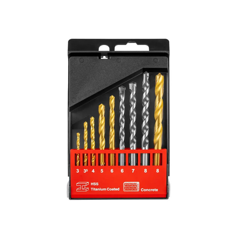توضیحات مجموعه: سایز مته آهن:5/3 , 8/6/5/4/3 میلیمتر و سایز مته الماسه بتن : 8/7/6 میلیمتر